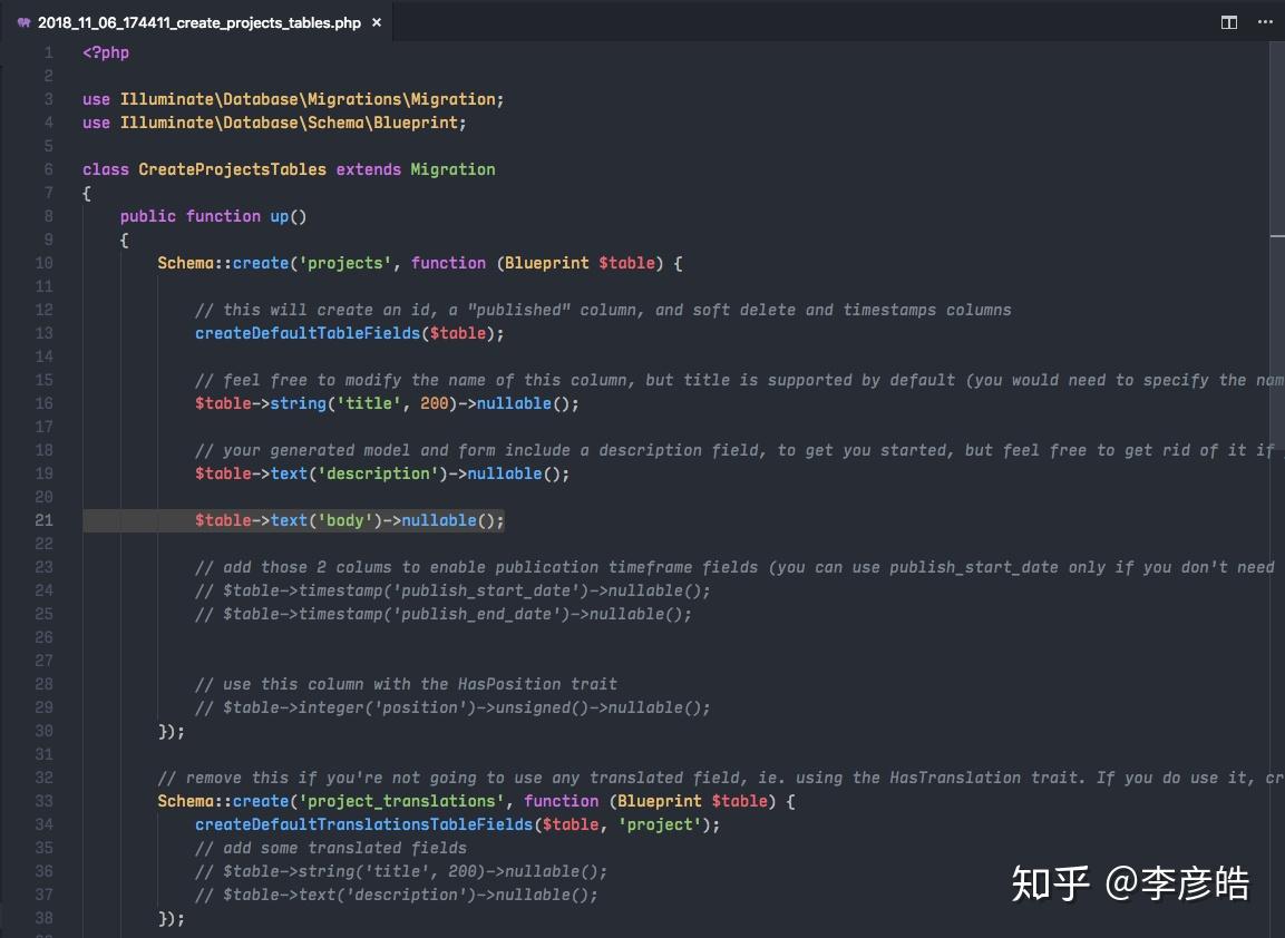 在create_projects_tables这个迁徙文件中添加一个body字段