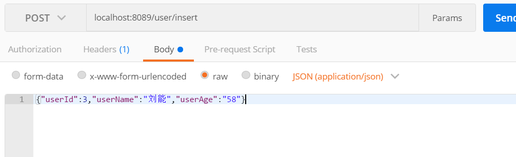通过 Postman随便插入几条记录 POST localhost:8089/user/insert