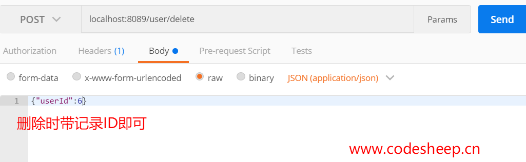 修改记录时同样需要带用户ID,比如删除ID=6 那条 刘大脑袋的记录