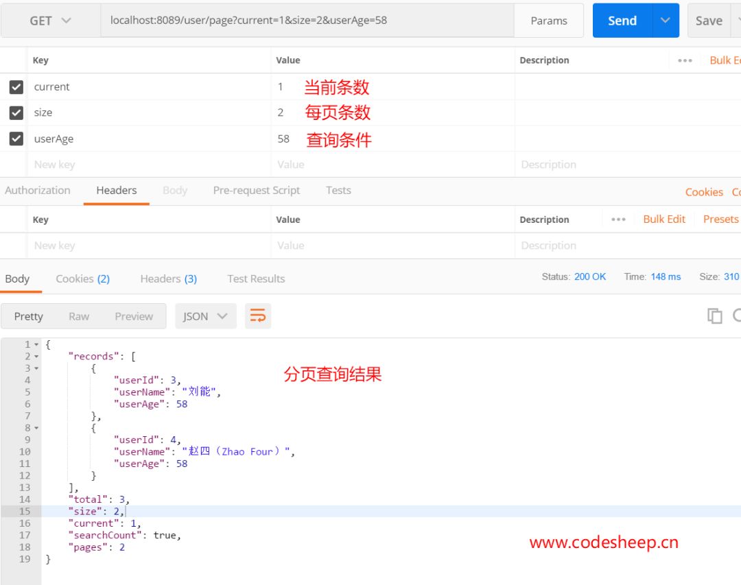 实际实验一下,我们分页查询 年龄=58 的多条记录: